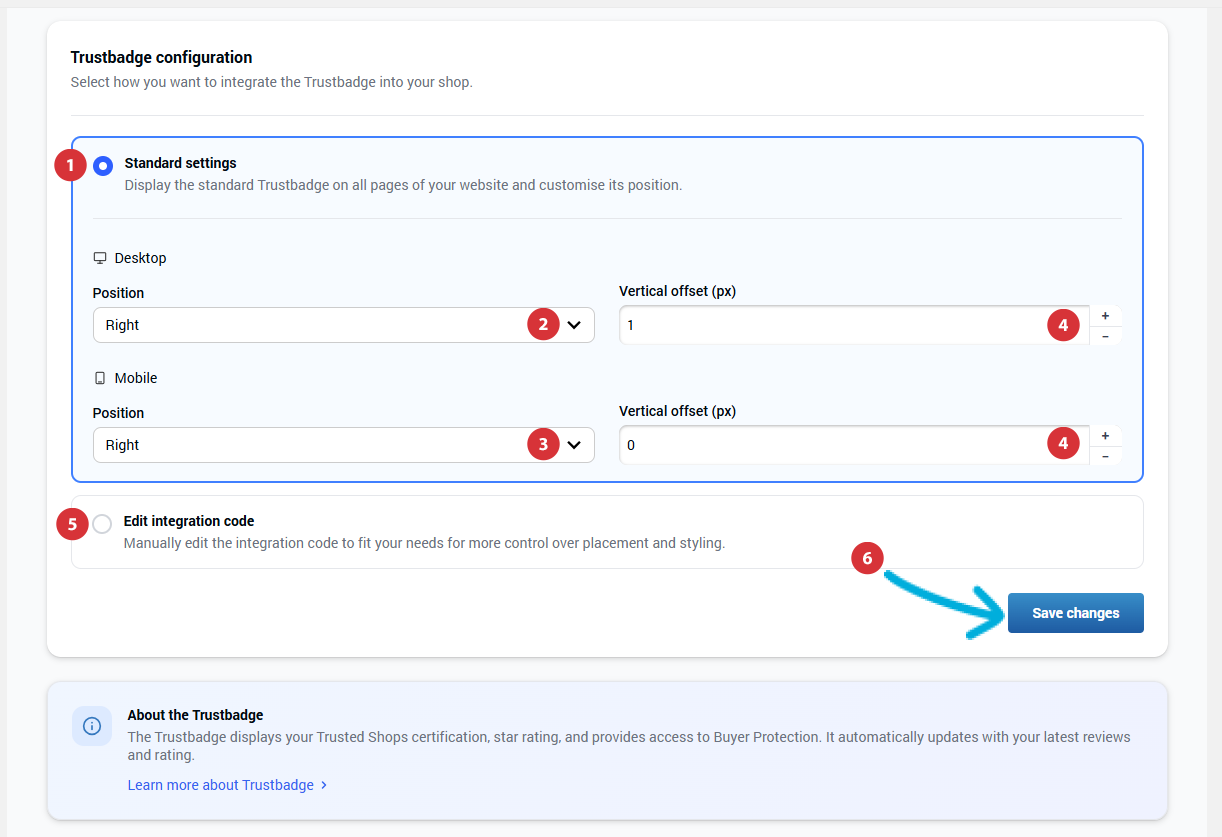 ). This allows you to decide whether the Trustbadge should be displayed on the right or the left in the desktop view.