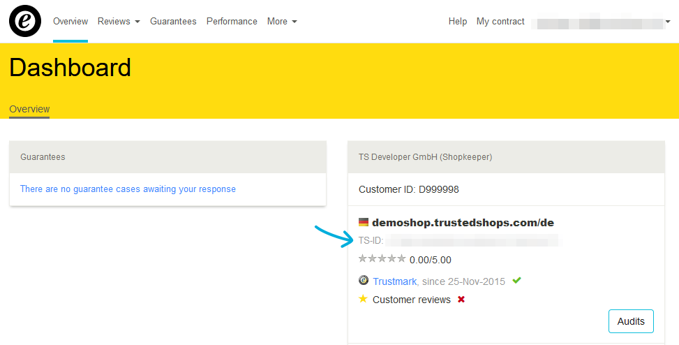 Os passos seguintes diferem conforme recolha apenas avaliações de serviço ou avaliações de serviço e produto com a Trusted Shops. Agora clique no link que corresponde ao seu site para continuar: